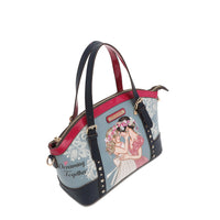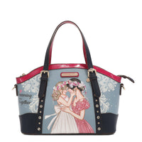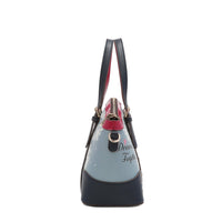 - Exterior de cuero granulado con detalles en charol de alto brillo