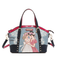 - Adornado con lentejuelas florales, diamantes de imitación y cuentas.