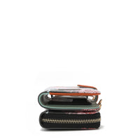 - La billetera con cremallera se abre a la ventana de identificación interior, 8 ranuras para tarjetas, cremallera lateral y bolsillos para notas