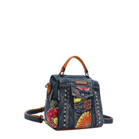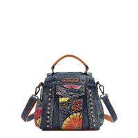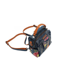 - Adornado con diamantes de imitación, tachuelas de bronce y detalles de puntadas metálicas.