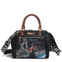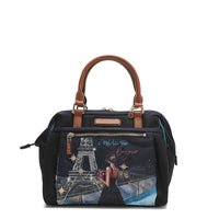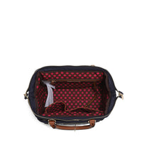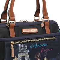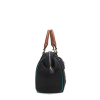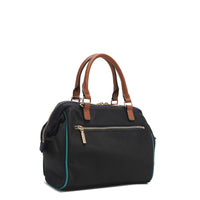 - Exterior de nailon ligero y resistente al agua con detalles en cuero