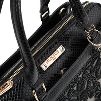 - Elevada con acentos exóticos de imitación, la coleccion de lentejuelas y encaje negro irradia sofisticación con encajes coquetos y cautivadores.