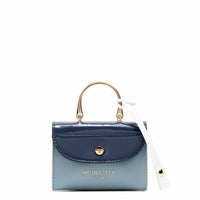 - Solapa redondeada con logo grabado y cierre de botón a presión