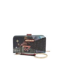 - Compartimento frontal con cremallera con 6 ranuras para billetes y compartimento central para monedas con cremallera