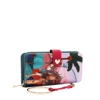 - Conozca nuestra clásica billetera plegable diseñada con nuestro estampado exclusivo de Nicole Lee con una elegante (y opcional) correa de muñeca.