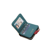 - Billetera de mano en la que caben tarjetas y billetes ilimitados. El broche de corazón es precioso