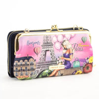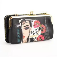 - La bolsa con cierre de beso se adhiere y se separa de la billetera con cremallera con botones a presión