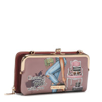 - La bolsa con cierre de beso se adhiere y se separa de la billetera con cremallera con botones a presión