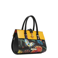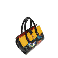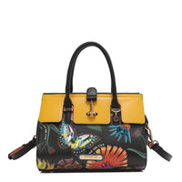 - El diseño frontal está adornado con diamantes de imitación y costuras metálicas