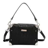 • El bolso de hombro cuadrado Embossed Elegance combina líneas limpias con elegantes detalles en relieve y glamorosos acentos en tono dorado, perfecto para llevar tus elementos esenciales con refinada sofisticación